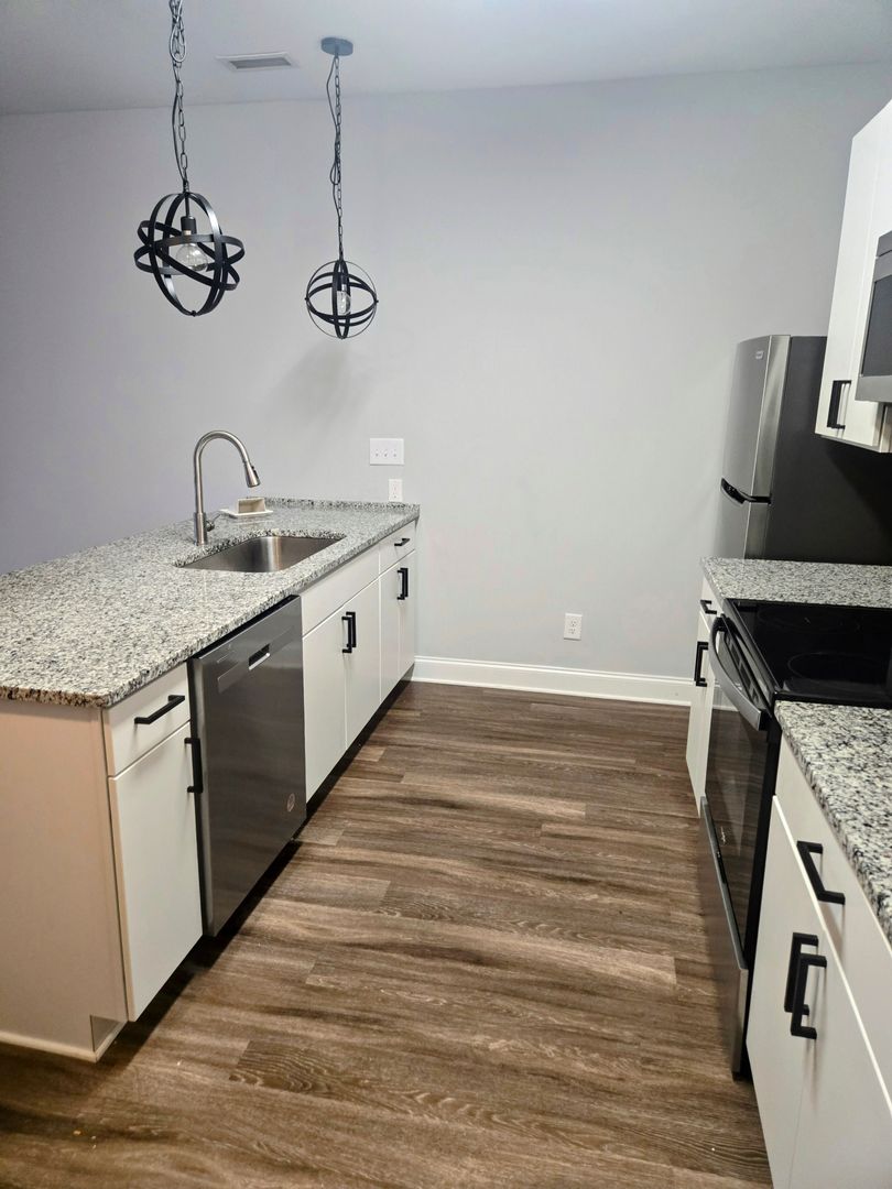 Welcome to our modern 1-bedroom, 1-bathroom apartment located in the vibrant city of Greensboro, NC. This stylish unit features stainless steel appliances, balcony/patios, wood-like LVP flooring, and granite countertops. The open floor plan allows for easy entertaining and the abundance of natural light creates a warm and inviting atmosphere. Whether you're a busy professional or a student looking for a convenient place to call home, this apartment is the perfect blend of comfort and style. Don't miss out on the opportunity to live in this contemporary space in a prime location.